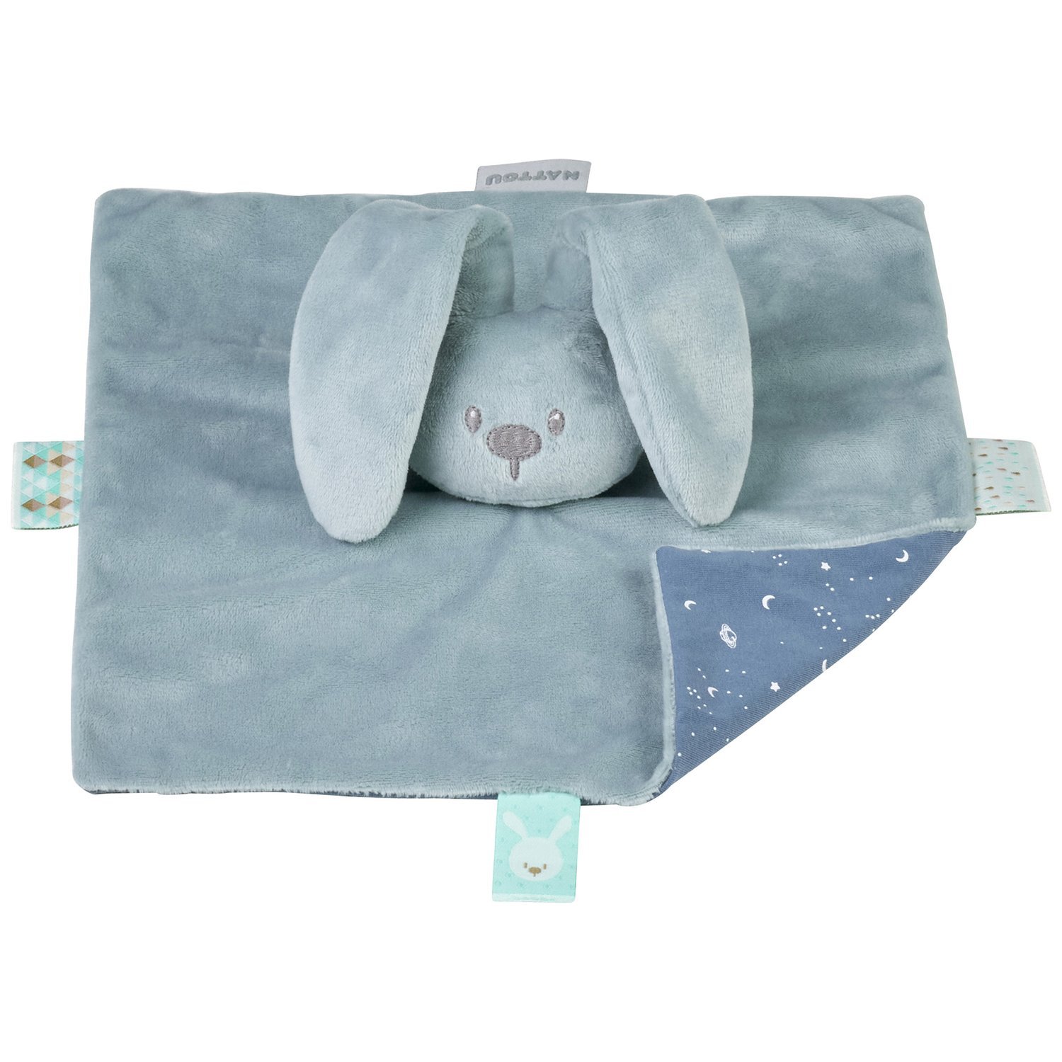 W9. DOUDOU PLAT CARRE NATTOU LAPIN LAPIDOU BLEU UNI - NEUF AVEC ETIQUETTE