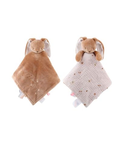 NOUKIE’S - Doudou réversible Jour et Nuit - Lapin Marron Moka - Matière Veloudoux® et Gaze de Coton Bio - Double Peluche éveil/Sommeil - Idéal pour apaiser et accompagner bébé