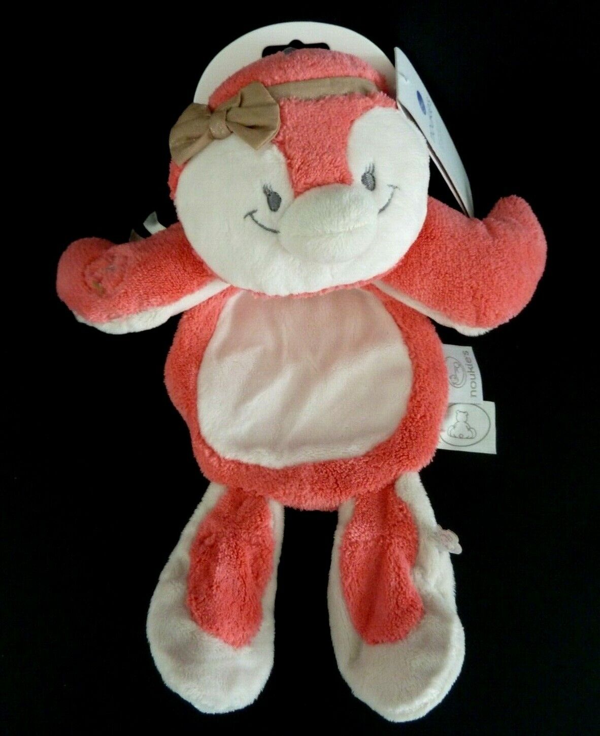 *. DOUDOU PLAT NOUKIE'S PINGOUIN ROSE BLANC DAISY ET COCO NOEUD NEUF ETIQUETTE