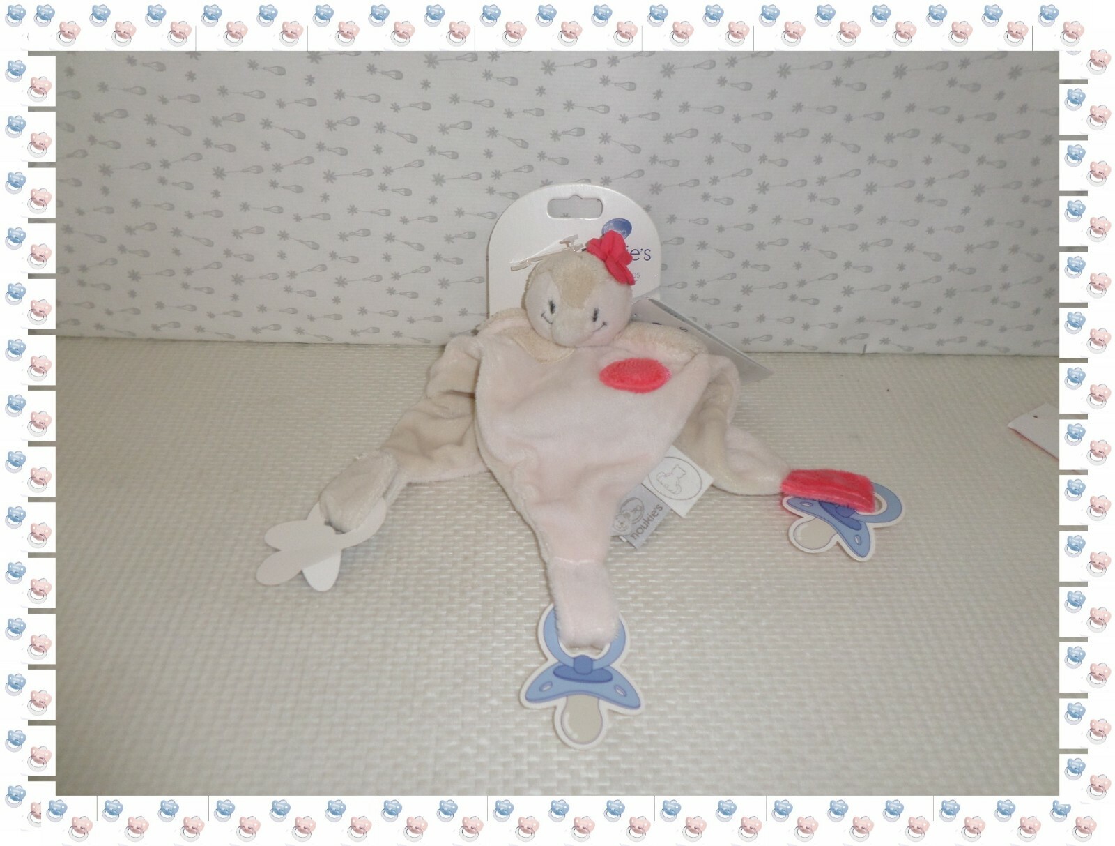 *. DOUDOU PLAT TRIANGLE NOUKIE'S PINGOUIN ROSE BLANC DAISY COCO AT.TETINE NEUF