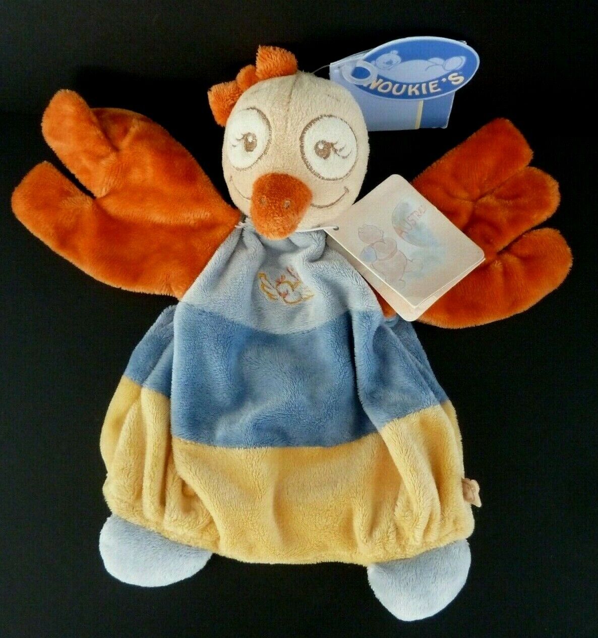 53. DOUDOU MARIONNETTE NOUKIE'S OISEAU AUTRUCHE SISSI jaune orange bleu NEUF