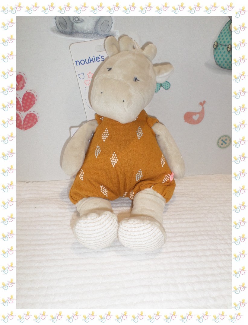☺ - Doudou Peluche Girafe Gigi Grège Blanc Ocre Noukies Noukie's