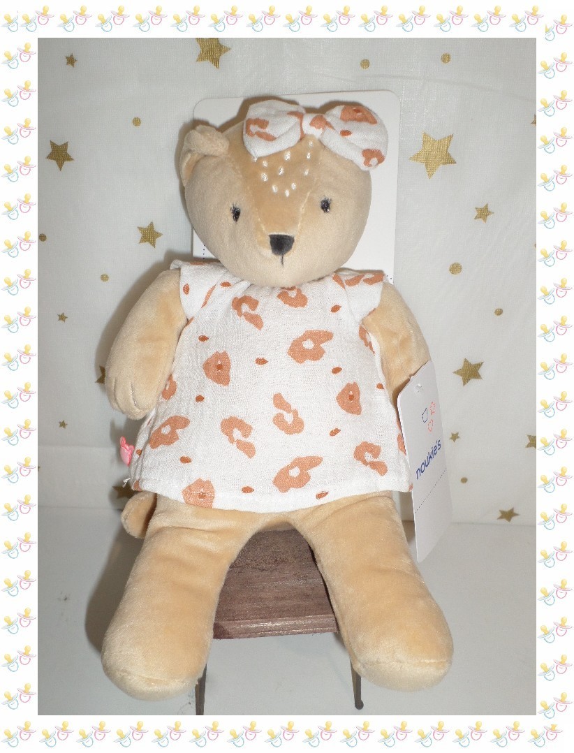 ☺ - Doudou Peluche Léopard Kendi Beige Crème Ocre Robe Noukies Noukie's