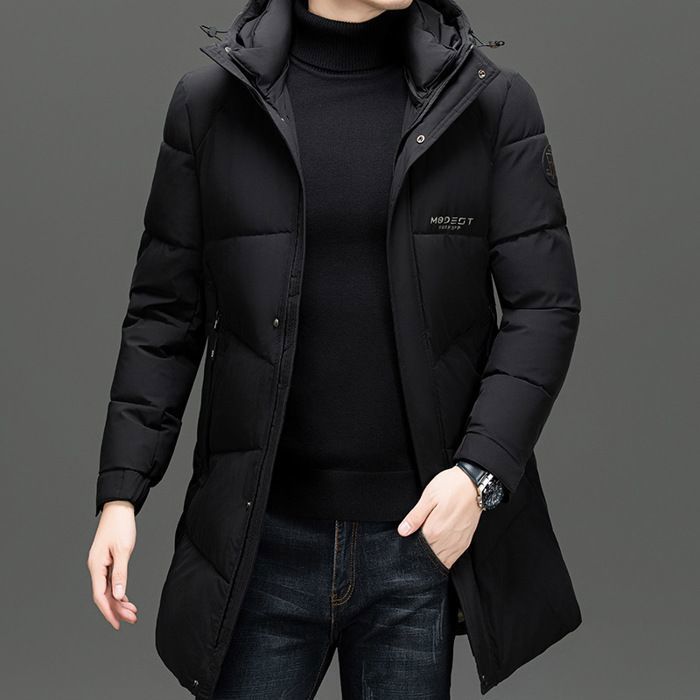 Doudoune Mi-longue homme - Noir - Automne Hiver Chaude A Capuche