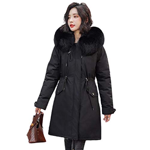 Parkas Femme Manteau Femme Hiver Doublure en Fourrure Chaude Veste d'hiver à Capuche Grand Col en Fourrure Doudoune,Black,M(55-65kg)