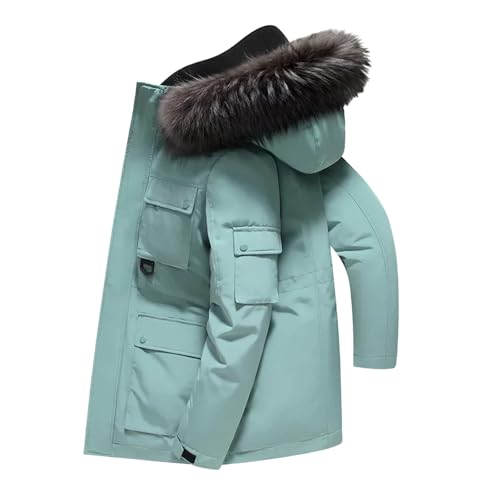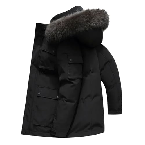 DYHQQ Doudoune pour Homme Manteau épais d'hiver Doudoune Chaude Manteau de Neige avec Capuche en Fourrure,C,XXL