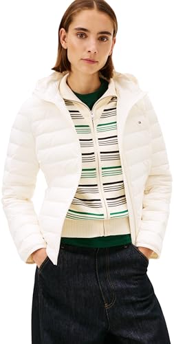 Tommy Hilfiger Stretch Nylon LW Down Jacket Ww0Ww47753 Doudoune, White (Ivory Silk), S Femme