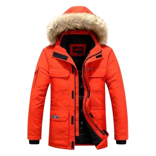 NLAVW Doudoune d'hiver pour Homme, Doudoune à Capuche avec Grand Col en Fourrure, Doudoune Épaisse Coupe-Vent et Chaude, Convient pour Le Travail en Plein Air, la Randonnée, la Pêche,Rouge,XL
