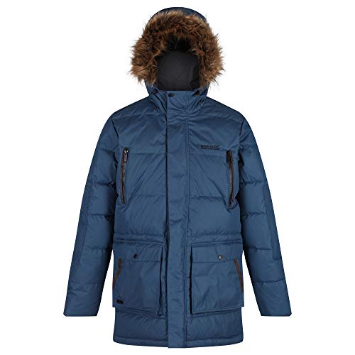 Regatta Parka imperméable et Respirante Angaros II avec Rembourrage en Duvet de Canard et Capuche en Fausse Fourrure Baffled/Quilted Jackets Homme Blue Wing FR: M (Taille Fabricant: M)
