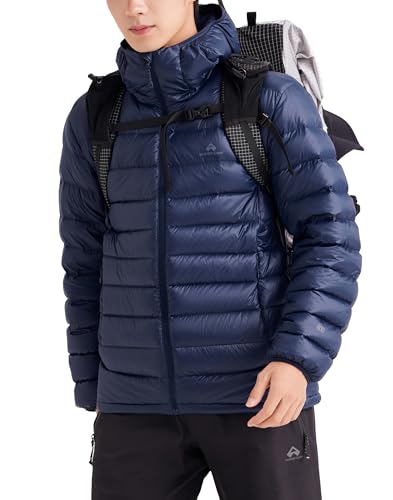 OLEETS Doudoune Homme - Veste Portable À Capuche pour Homme, Grande Taille, Légère, Chaude, pour L'Extérieur, Automne-Hiver, Vêtements Décontractés pour Jeunes Étudiants, Bleu, 5XL