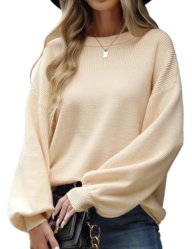 heekpek Pull Femme Hiver Chaud Chic et Élégant Col Rond Oversize Doux Pull Grosse Maille Femme Sweat Décontractée Manche Longue Haut Automne, Beige, L