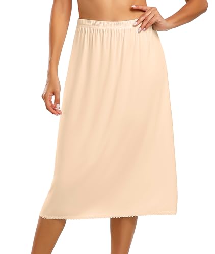 Vlazom Jupon Femme Longue Fond de Jupe Femmes Léger Jupe sous Robe Taille élastique Confortable,Beige,M