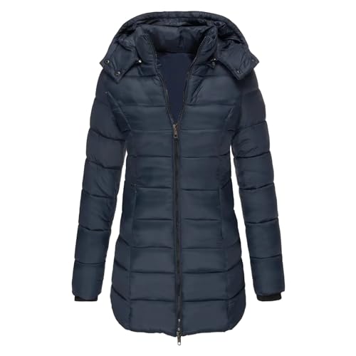 Veste d'hiver longue pour femme - Veste d'hiver pour femme - Longue et chaude - Doudoune doublée avec capuche - Veste en duvet imperméable - Veste d'hiver matelassée épaisse - Fermeture éclair