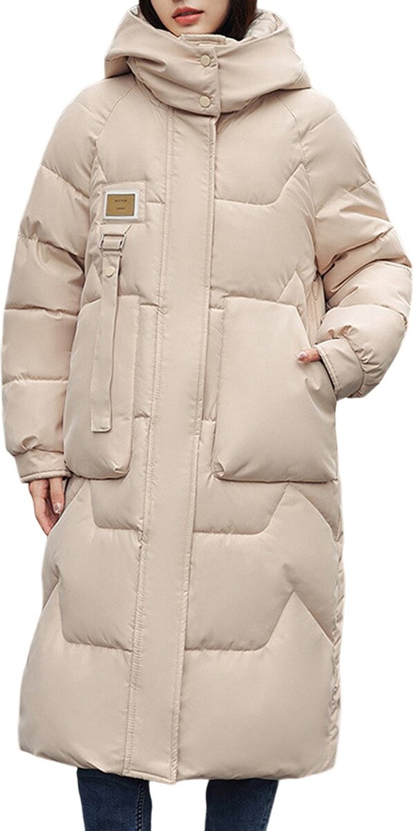 ADOSSAC Doudoune Femme Longue Hiver avec Capuche Manteau de Coton Chaude Chaud Parka Longue Blouson À Capuche Trenche Grande Taille Duvet en Coton Manteau Femme Hiver Doudoune 3XL Beige