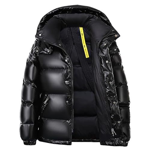 CUTTE Veste Doudoune d'hiver Brillante pour Hommes, Manteau en Duvet Thermique Résistant à l'eau avec Poche à Fermeture Éclair et Chaud et Épais,Black,XL