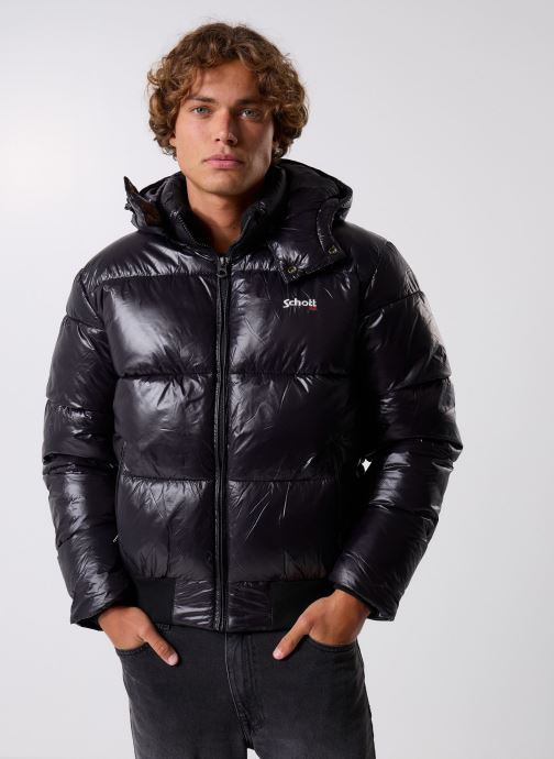 Schott Vêtements Doudoune Brillante A Capuche pour Homme Male L COLUMBUS-Black