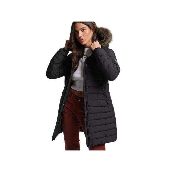 Doudoune Superdry Fuji Hooded Mid Length Puffer 02A - Femme - Noir - 100% Polyester - Fermeture Éclair