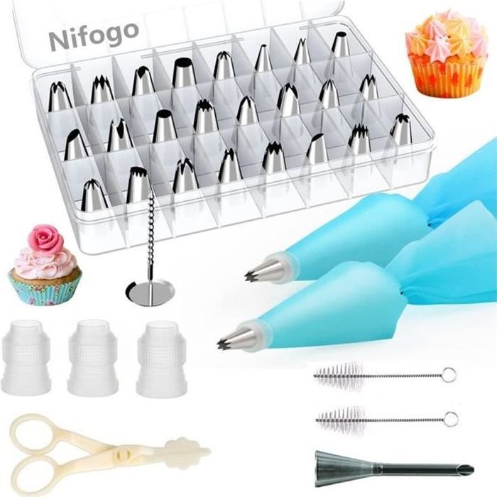 Douille Patisserie Poche à Douille Patisserie 34 Pièces Acier Inoxydable DIY Kits pour Décoration de Gâteaux
