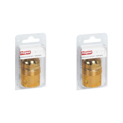 LEGRAND - Douille E27 pour Ampoule - Douille en Acier Laitonné avec Borne de Terre - Puissance Max : 150W - Fabriqué En France (Lot de 2)