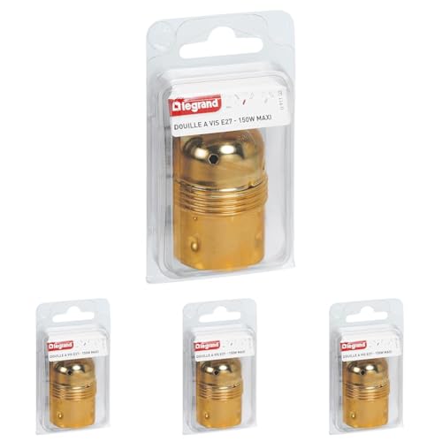 LEGRAND - Douille E27 pour Ampoule - Douille en Acier Laitonné avec Borne de Terre - Puissance Max : 150W - Fabriqué En France (Lot de 4)