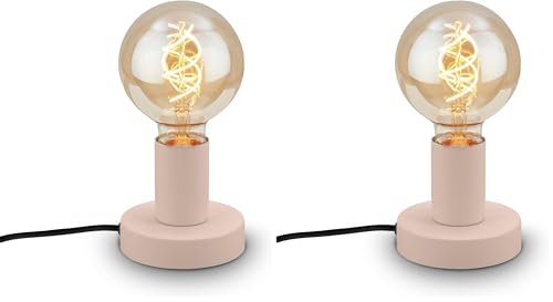Briloner - Lampe de table avec interrupteur à câble, aspect rétro, douille E27, vintage, lampe de chevet, lampe de salon à poser, 10 x 9 cm, beige (Lot de 2)