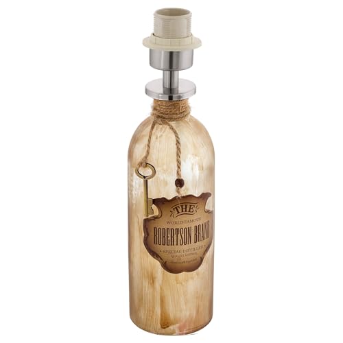 Eglo Lampe de Table Mojada 1, 1 Flamme, Lampe de Table Vintage, Industrielle, Rétro, Lampe de Chevet en Verre Patine Marron avec Motif Whisky, Lampe avec Interrupteur, Lampe Bouteille avec Douille E27