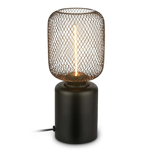 BRILONER - Lampe de table avec treillis métallique, interrupteur à fil, douille E27, lampe de chevet, lampe de bureau, lampe de salon à poser, lampe à poser, lampe table salon, 10 x 25 cm, noir