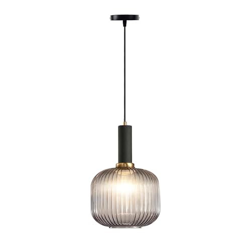 ESKED Suspension Moderne en Verre Strié avec Douille E27, Luminaire Suspendu pour Îlot de Cuisine, Salle à Manger, Chambre (Gris, 20cm)