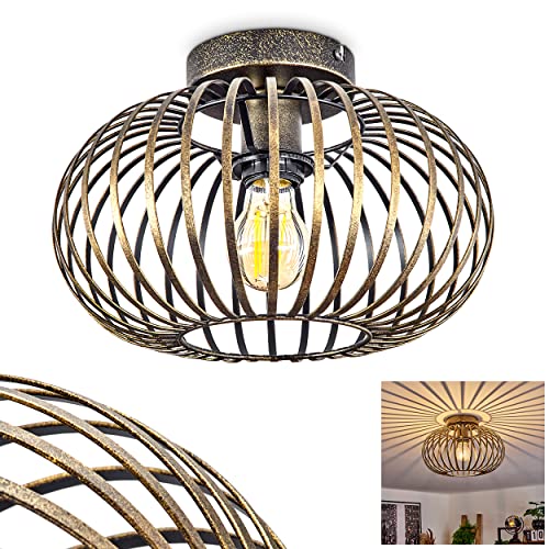 Plafonnier Oravi, lampe de plafond en métal doré/antique/noir, avec abat-jour en treillis, Ø 30 cm, 1 flamme, douille E27, luminaire moderne avec jeu de lumière, ampoule(s) non incluse(s)