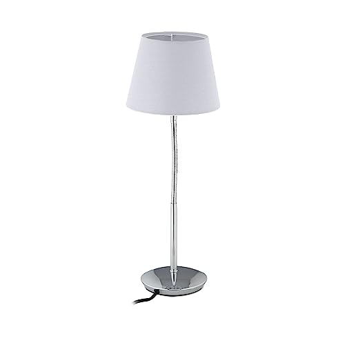 Relaxdays Lampe de Chevet, Bras Flexible, Abat-Jour en Tissu, Pied chromé, Douille E14, luminaire, HxD : 47x17 cm, Blanc
