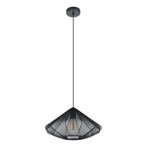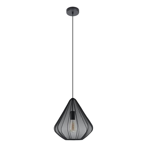 Eglo Suspension luminaire Eldrick, lampe suspendue pour table à manger, plafonnier salon industriel en métal noir, lustre avec douille E27, 20x20 cm