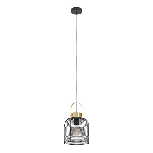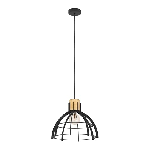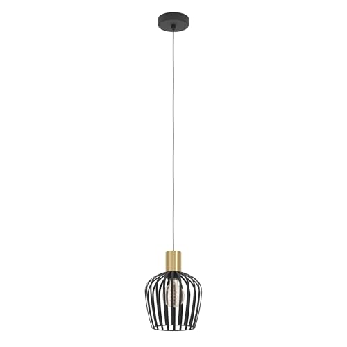 Eglo Suspension luminaire Empoli, lampe à susprendre rétro pour table à manger, lustre chambre et salle à manger, métal noir et laiton, douille E27