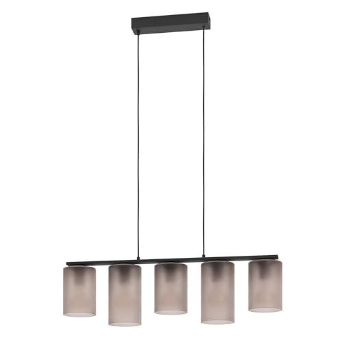 Eglo Suspension luminaire Colomera, lampe de plafond suspendue à 5 abat-jour, lustre élégant pour salle à manger, métal noir et verre fumé, douille E27, 80 cm