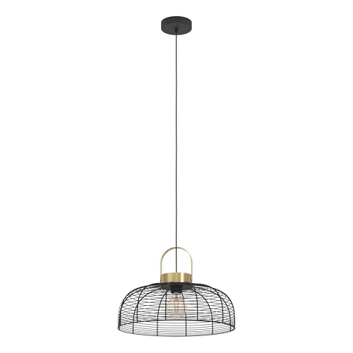 Eglo Suspension luminaire Roundham, lustre pour salon et salle à manger, lampe de plafond suspendue en métal noir et laiton, douille E27, Ø 22 cm