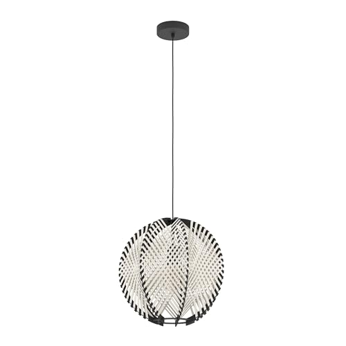 Eglo Suspension luminaire Marywell, lampe de plafond suspendue au style japonais, lustre pour salle à manger, métal noir et bambou naturel, douille E27, 50 x 34,5 cm