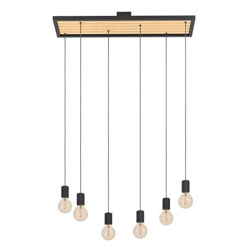 Eglo Suspension luminaire Consett, lustre à 6 lampes pour salon et salle manger, FSCM70HB, lampe de plafond suspendue en bois métal noir, douille E27