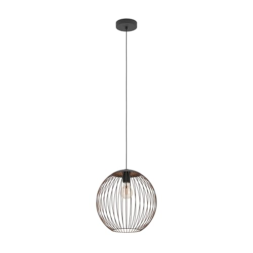 Eglo Suspension luminaire Almanzora, plafonnier suspendu, lampe pour salle à manger, lustre salon en métal noir et cuivre, douille E27, Ø 32 cm
