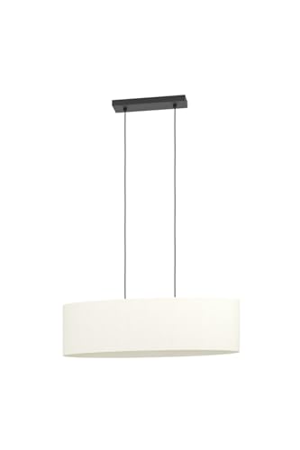 Eglo Suspension luminaire Febres, lampe de plafond suspendue ovale, lustre pour salle à manger en tissu bouclette, métal en noir et textile en blanc, douille E27, 78 cm