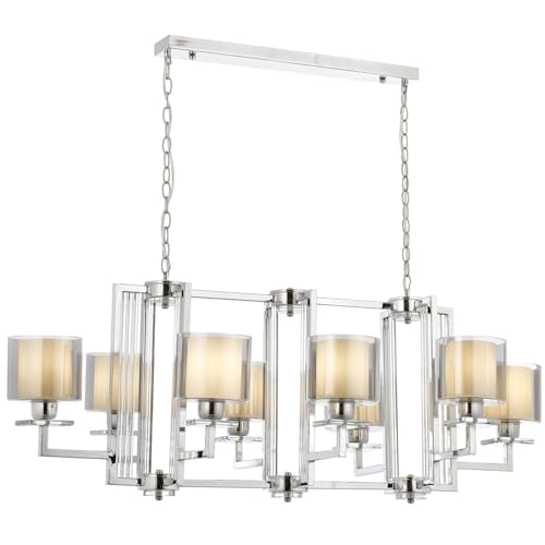 Opviq Élégant lustre chromé, 100 cm de hauteur x 110 cm de largeur x 60 cm de profondeur | 8 douilles E14, max. 40 W | Design moderne glamour pour les intérieurs élégants