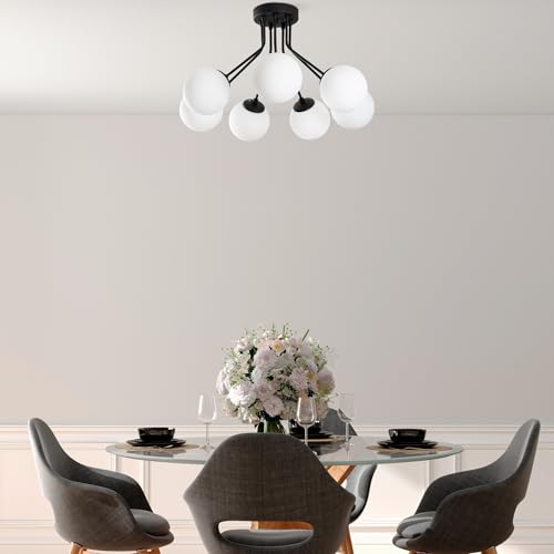 Opviq Lustre noir élégant, corps en métal, diamètre 74 cm, hauteur 30-70 cm | 7 douilles E14 max 40 W, éclairage élégant pour espaces modernes, indice IP20