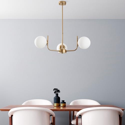 Opviq Élégant lustre doré, hauteur réglable 20-110 cm, corps en métal, 3 douilles E14, diamètre du capuchon 15 cm, indice IP24 | Parfait pour les intérieurs modernes