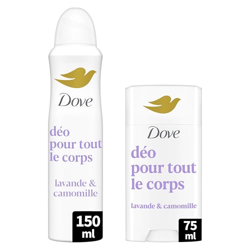 Dove - Déodorant pour Tout le Corps - Stick - Lavande & Camomille - Anti Odeurs et Traces Blanches 72h - Conçu pour les Peaux Sensibles - 75ml