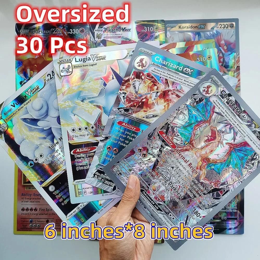 Kadel-Carte Monstre De Poche Extra Large, Anglaise Française, 30 Cartes À Lettres Géantes, Vmax Vstar Arceus Pikachu Charizard, Carte Rare Super Brillante,30pcs English
