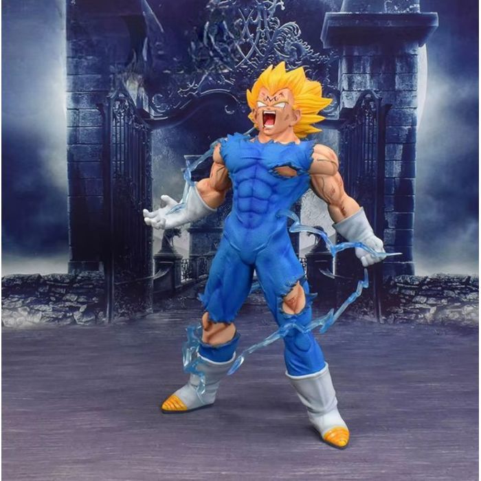 Figurine Vegeta Majin Super Saiyan 27cm - hurlement - Dragon Ball Z Effet Énergie Bleu - Collector PVC avec Boîte