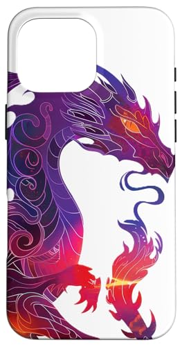 Couleurs Vives : Violet, Rouge, Orange, Dragon de feu Coque pour iPhone 16 Pro Max