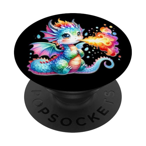 Dragon x Cute Rainbow Dragon respirant le feu x Bébé Dragon PopSockets PopGrip Adhésif