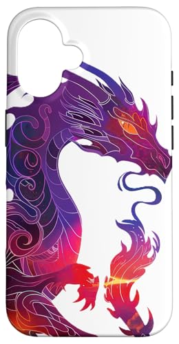 Couleurs Vives : Violet, Rouge, Orange, Dragon de feu Coque pour iPhone 16