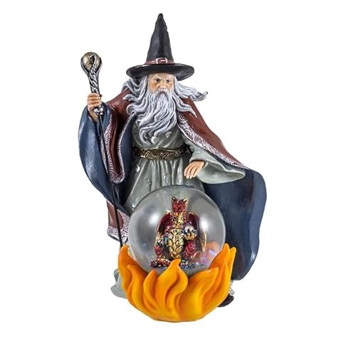 DRW Sorcier en résine Peinte à la Main avec Dragon dans Le feu 20 x 15 x 21 cm