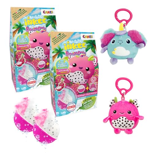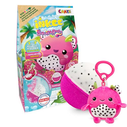 INKEE Boule de Bain Enfant avec Surprise - Bombe de Bain Dragon Fruit 80g + Peluche Squishpet - Bombes de Bain Cadeau Fille & Garçon