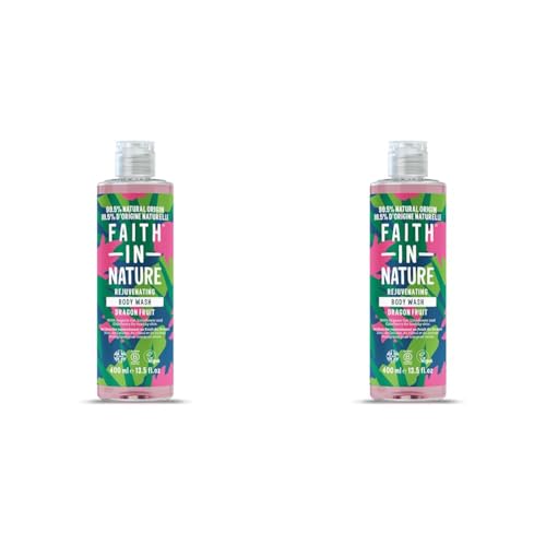 Faith In Nature, Gel Douche & Bain Naturel au Fruit du Dragon Faith In Nature, Revitalisant, Vegan & Cruelty Free, Sans Parabènes & SLES, 400ml (Lot de 2)